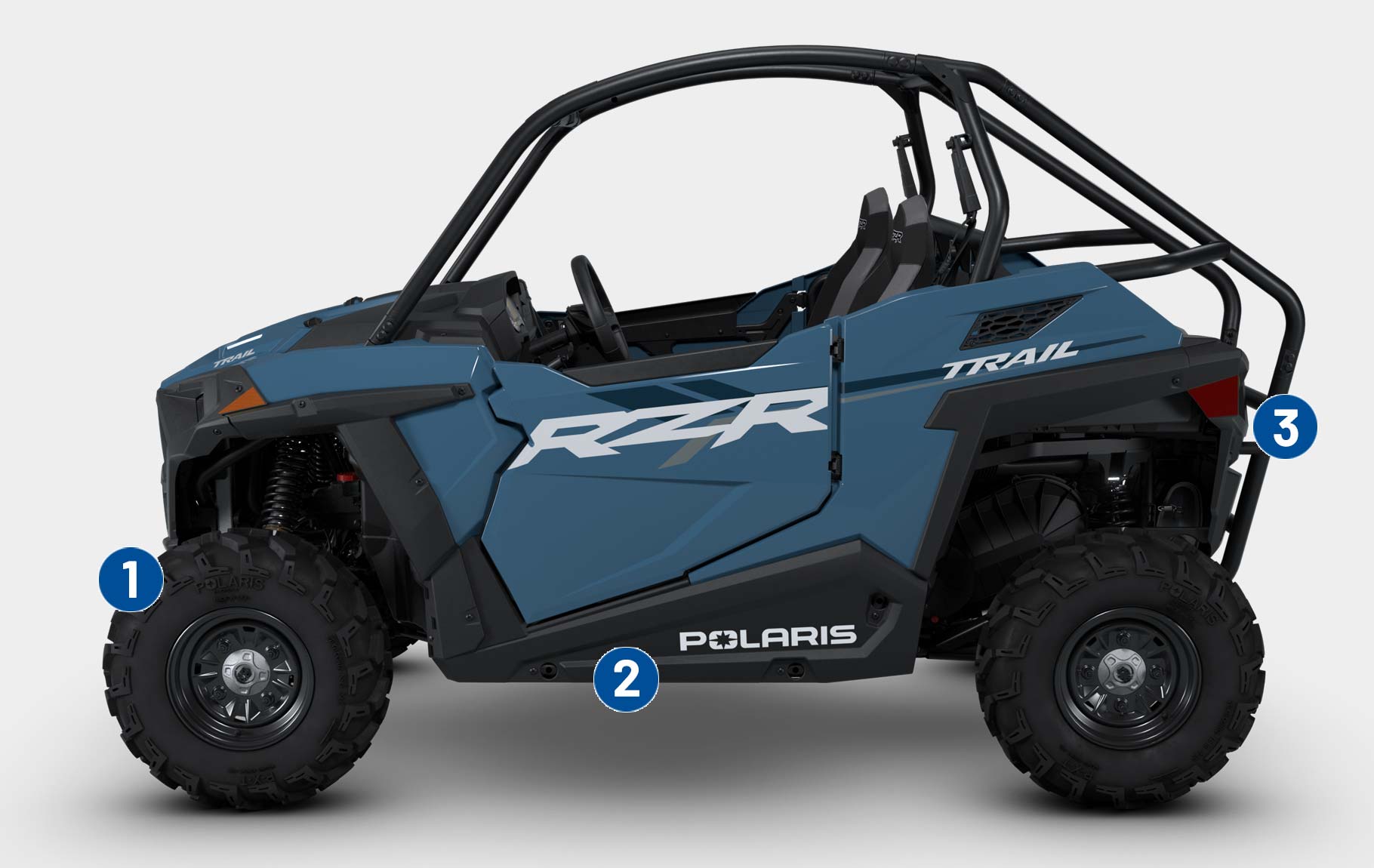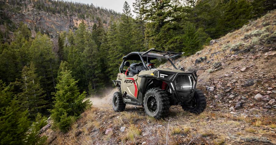 RZR Trail presume el ancho más delgado de nuestra línea, agilidad precisa, aceleración instantánea y comodidad durante todo el día.